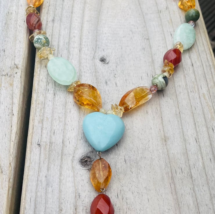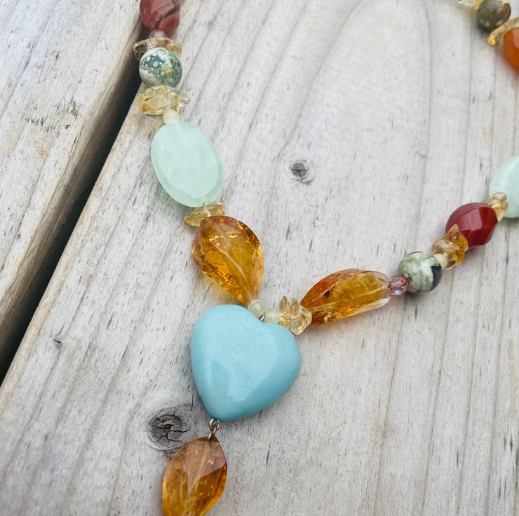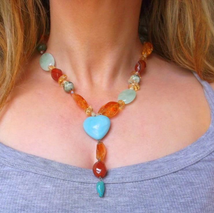 Aventurine Heart, Carnelian, Citrine Necklace.