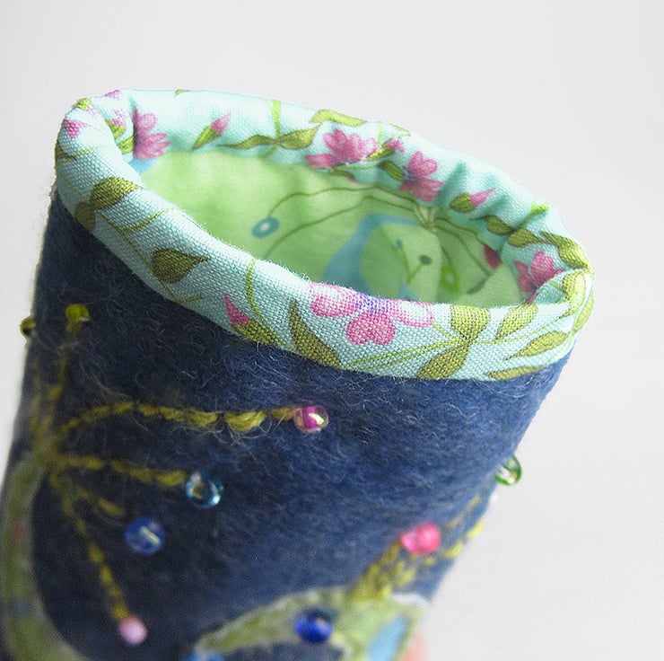The idea for the appliquéd bird is taken from my love of Scandinavian ceramic birds and bird designs particularly from the early 1960s.