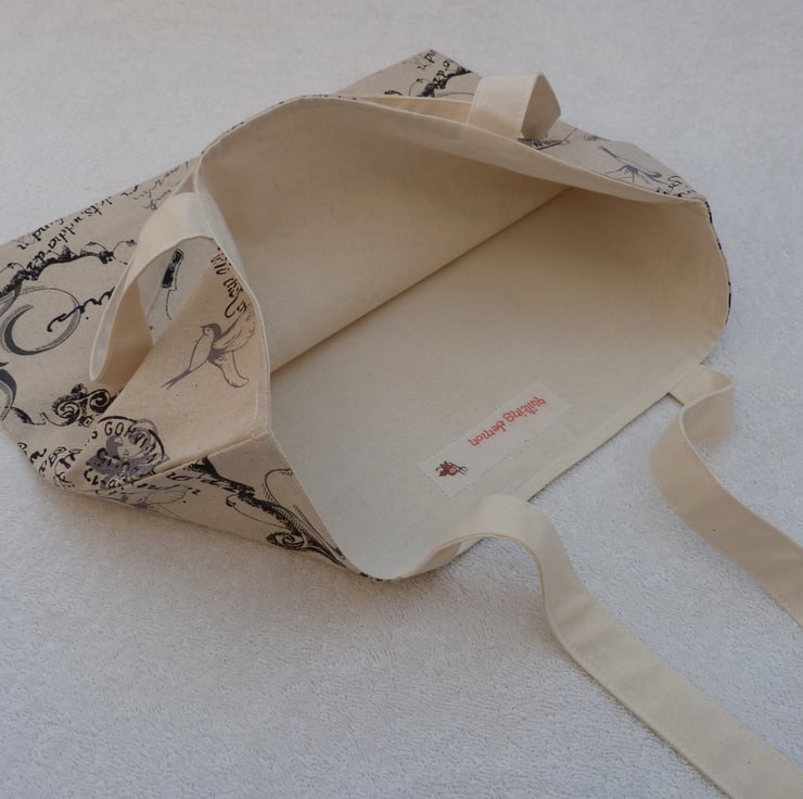 I have designed and created this useful tote bag from cotton fabrics. The bag is fully lined with a cream cotton and is top stitched for a professional finish.