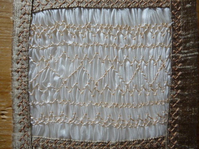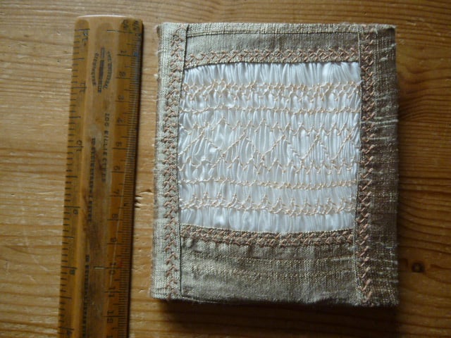 An exquisite small, Dupion silk needlecase featuring a fine white Habotai silk panel which has been smocked with a fine rayon thread to match the Dupion silk.