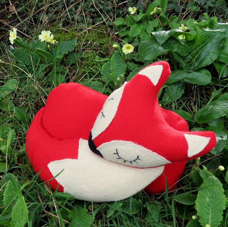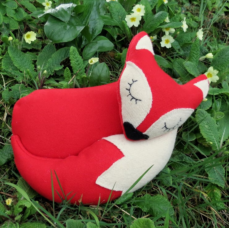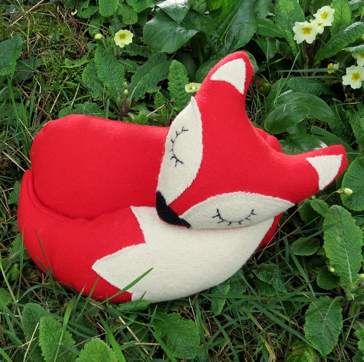 Snoozy fox is made from a vibrant red wool.