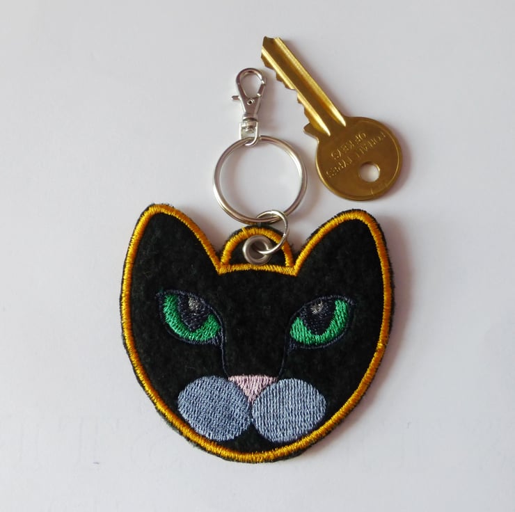 Embroidered cat key ring.
