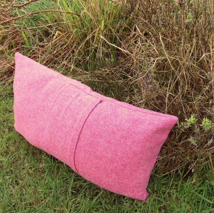 Thee is a deep envelope opening to the reverse, which is the same warm pink wool as the front.