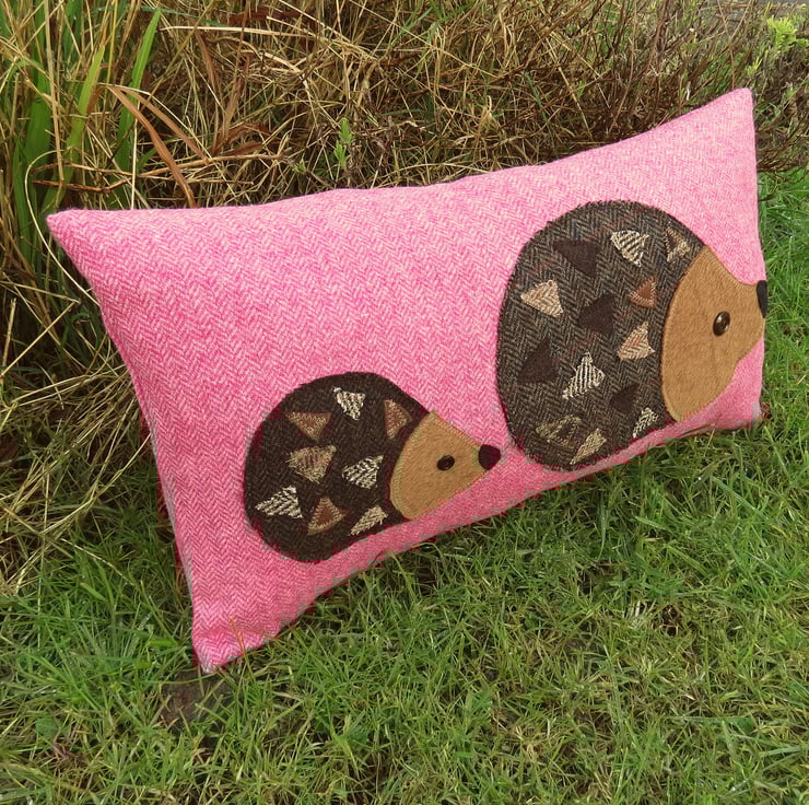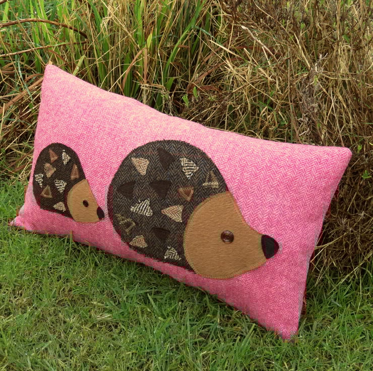 Hedgehogs on pink wool.