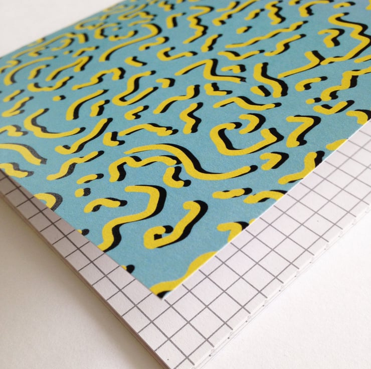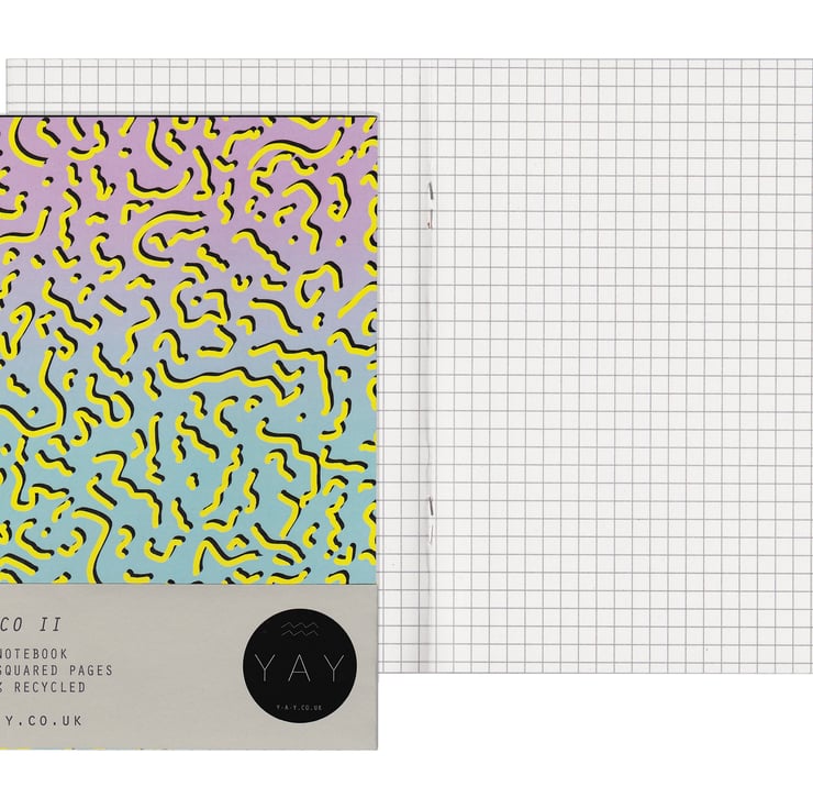 A Memphis inspired patterned notebook designed by Y A Y.
