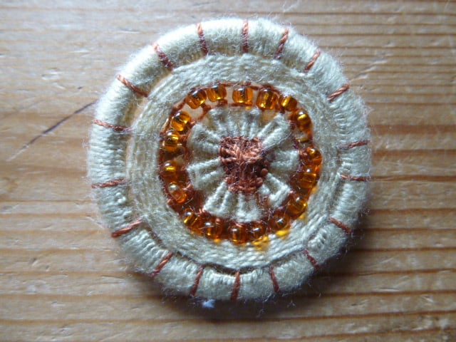The brooch is worked on a 32mm metal ring and is light to post and makes a perfect small present for the person who has everything!