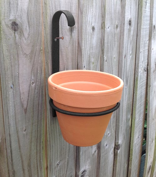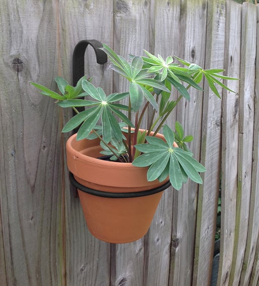 Ideal for trailing plants. Position in and out of sunlight as required. No need for drills etc, pot not included. Hand-made from sturdy 3mm flat bar and round bar then finished in rust resistant black. Fits 6" terracotta pots.