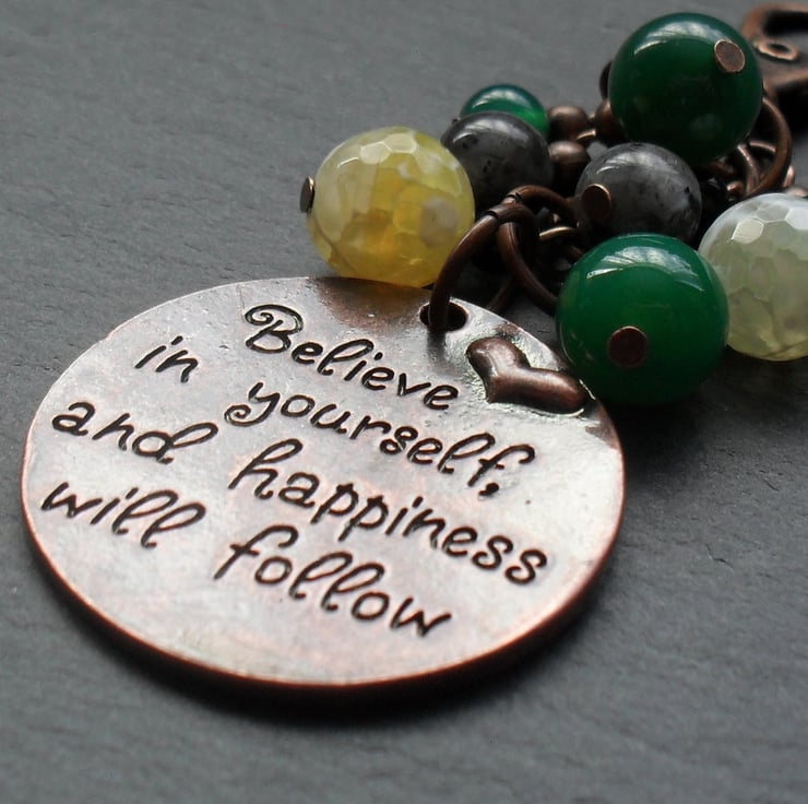 Charm Measures approx. 32 mm with the wording of Believe in yourself and happiness will follow.