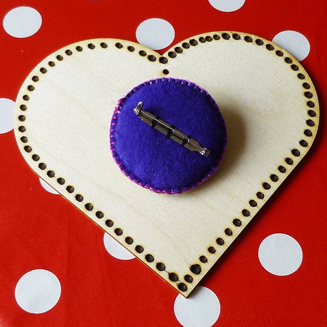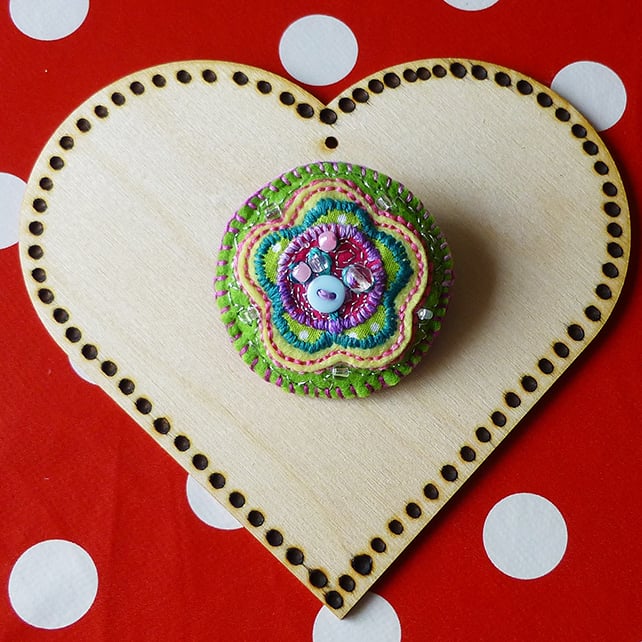 This fabulous handmade appliqued brooch would look gorgeous pinned to the lapel of a jacket or cardigan.