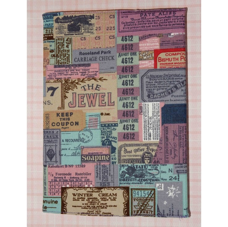 This would be a fun travel journal or notebook. There are more items available in this fabric, please check out my shop or message me if you would like something making.