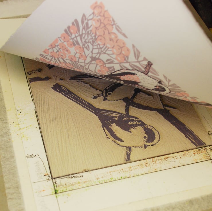 Every time an image is hand pressed the anticipation of the reveal when pulling back the paper can make for some wonderful, unique images. The weight of the press, amount of ink and paper used means every single print is different, such a refreshing change in this digital age.