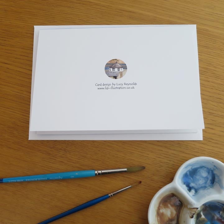 Greeting card featuring a watercolour illustration of Charlestown Harbour, Cornwall. I painted the original illustration with watercolours.