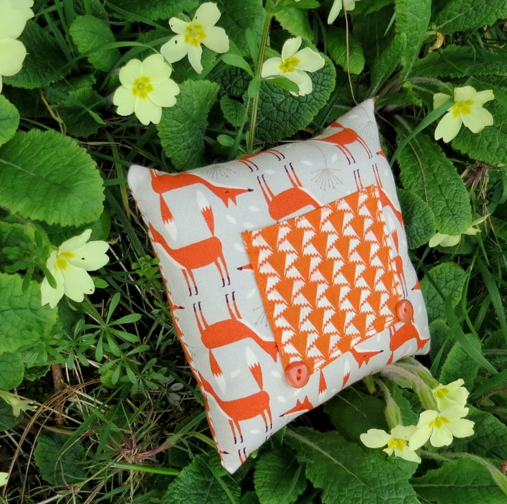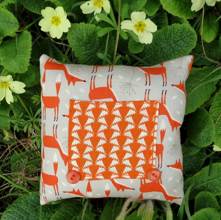 The background fabric is a cotton fabric with a whimsical fox design.