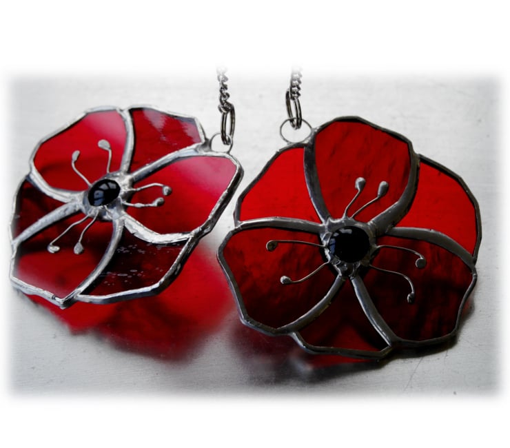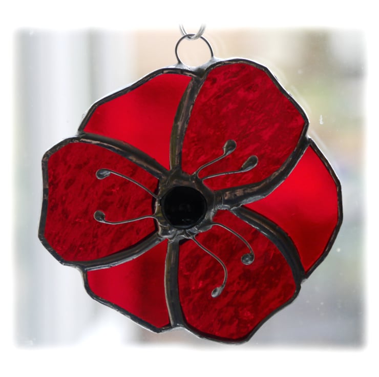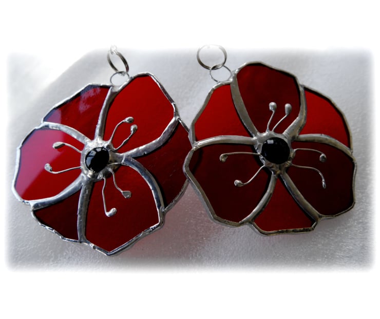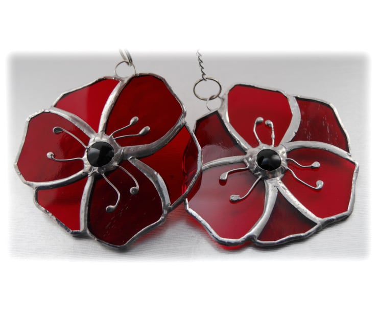 The centre of the poppy is a black glass nugget and this is adorned with 6 little wire stamens.