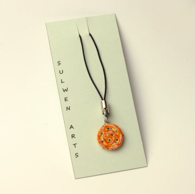 It has been handmade from polymer clay and finished with a dusting of fake sugar for a yummy realistic look. It measures roughly 1cm across and comes presented on a smart cardboard backing.