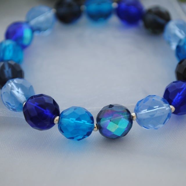 Stretch bracelet with faceted crystal beads with lustre sparkle and silver spacers. This stretch bracelet is around 7.25 in length.