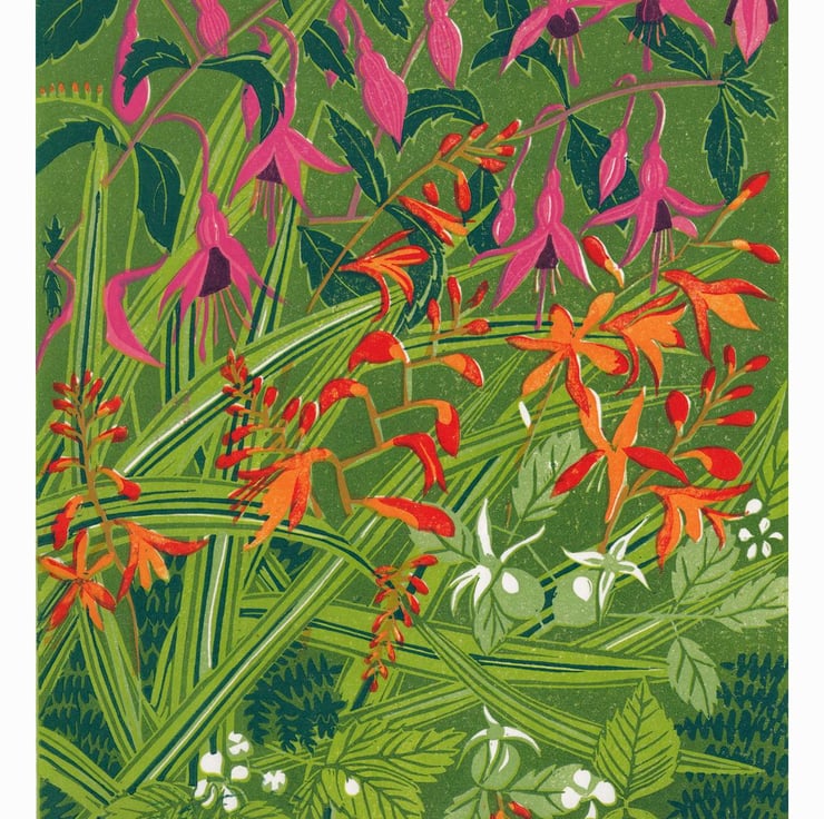 ORIGINAL lino print - ' KERRY HEDGEROW'