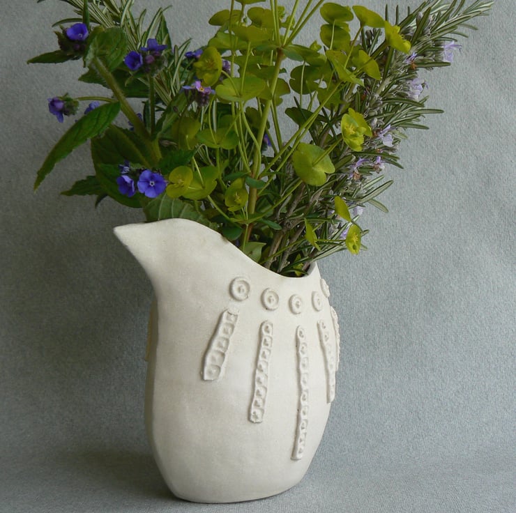 Scandinavian inspired detail features on this stoneware fired bird vase. A individual and unique gift for a wedding or anniversary.