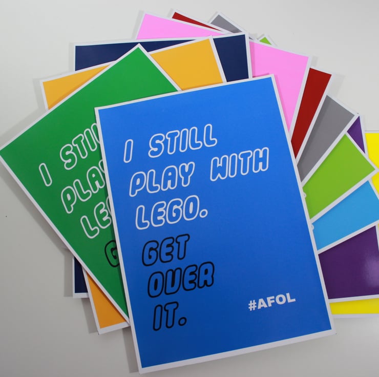 Inspired by the Stonewall campaign we have designed our own version for all adult fans of Lego... It's about time that those of us who do not want to grow up can say with pride that "I still play with Lego. Get over it."