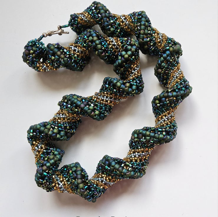 This necklace took over 52 hours to create and similar Cellini spiral beaded necklaces on other craft websites are for sale costing over £100.00 plus.and selling! Sorry, I do not make quality hand made jewellery for charity as this is my full time business and my small profit is my income!
