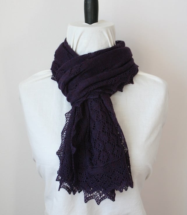 I have hand knitted the scarf in 1 ply merino yarn, which is spun in Italy. The high quality, luxurious yarn, produces a scarf that is wonderfully soft, light, and warm to wear.