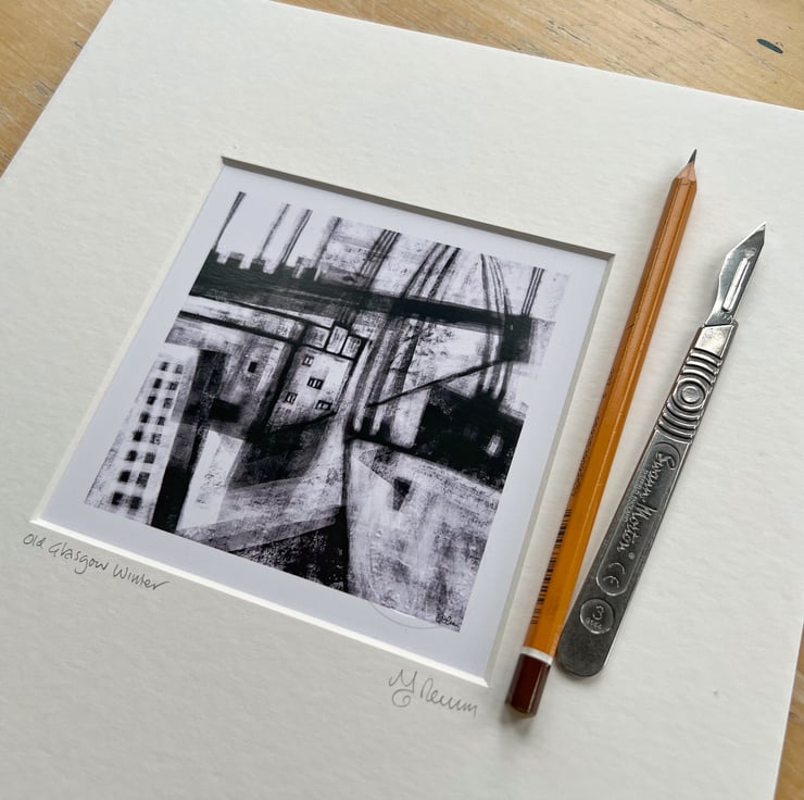 This is based on my memories of Glasgow as a child. The city was in the beginning of it's transformation but I still remember it as a cold, dark and gritty place! Tenements still dominated large areas of the city but new, modern high rise flats where supposedly the future of living, and their structures where just beginning to take their place on the landscape.