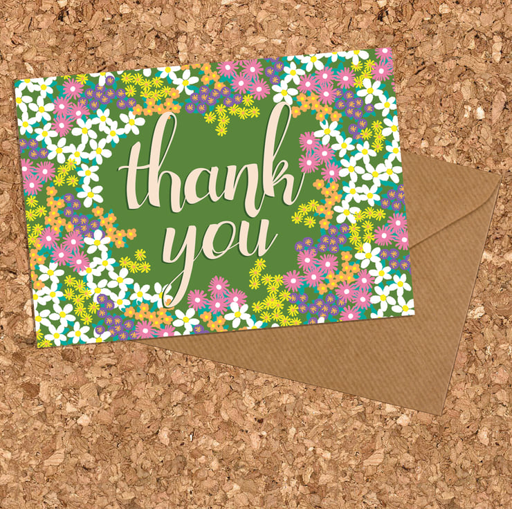 Pack of 10 Thank You Postcards with Brown Kraft Envelopes - Spring Floral