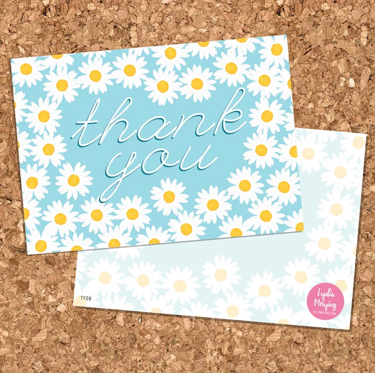 A pack of 10 Thank You postcards in a pretty daisy design. Great to express a heartfelt Thank You to your wedding guests, party guests and to show your appreciation to those special people in your life.