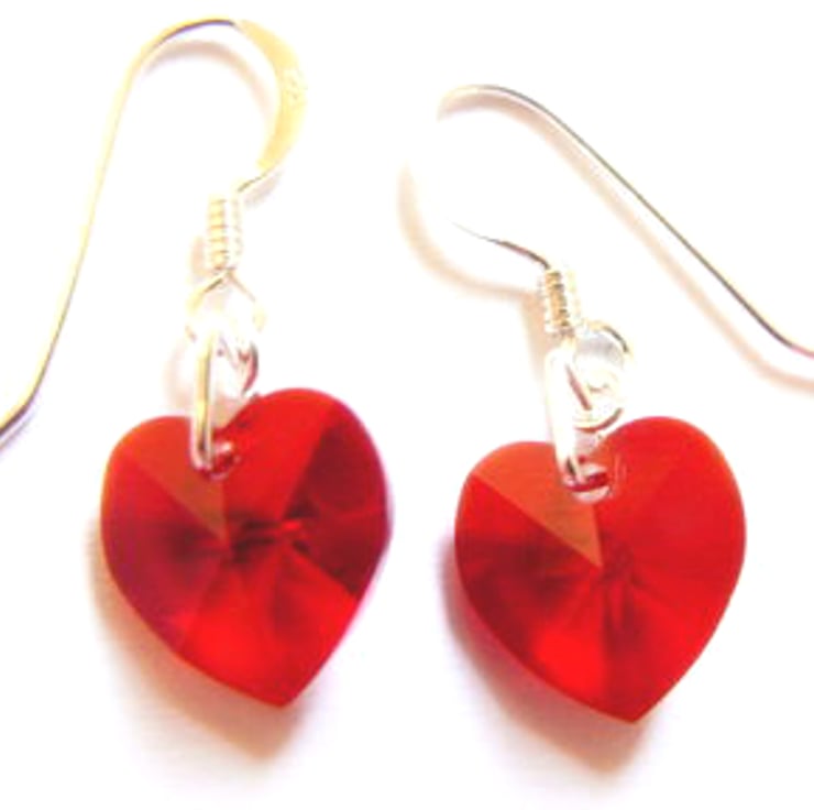Red Swarovski Crystal Heart Drop Earrings, normally £14, one pair is at sale price.! 10mm red swarovski crystal hearts on sterling silver.