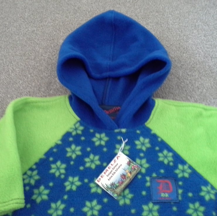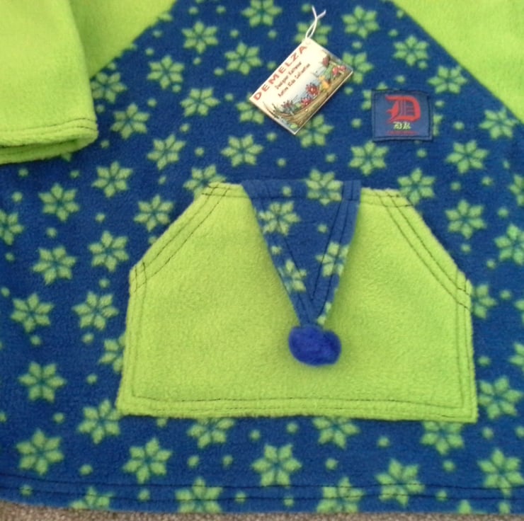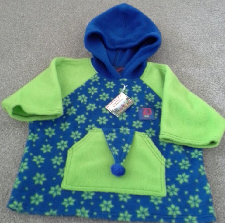 A true 'one off' baby unisex hooded fleece top designed and meticulously hand made by myself to a very high standard. It will be ideal for popping on when the British summer has 'off days' or to have handy when going on holiday for days on the beach either in the UK or overseas. The garment washes butifully and dries quickly without any further care such as ironing. I have made it extra long in the body to gain good wear and the sleeves have been designed to be 3/4 as the child grows.I am