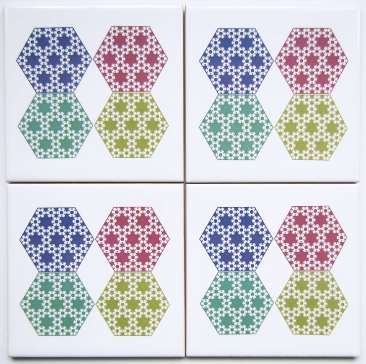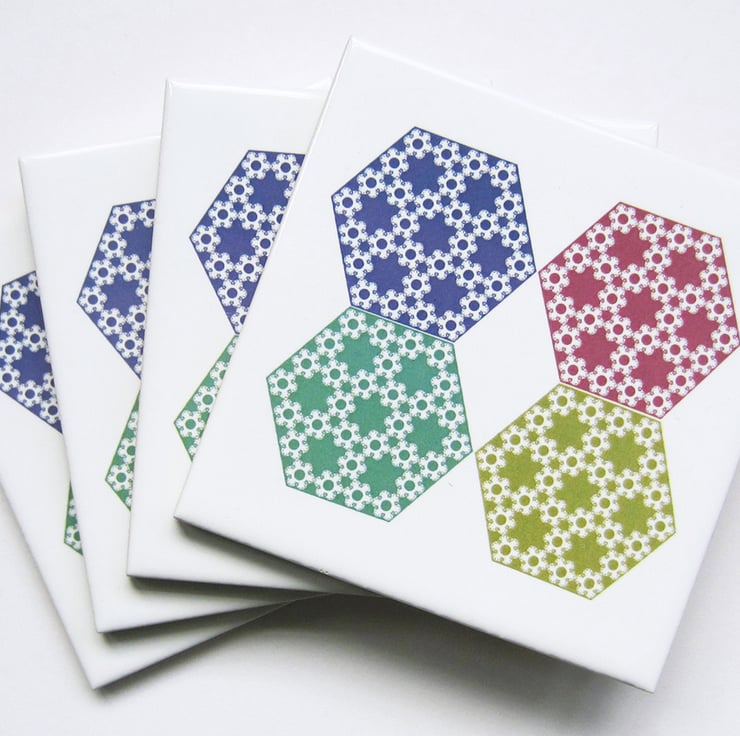 Set of 4 Pastel Hexagon Pattern Ceramic Tile Coasters with Cork Backing