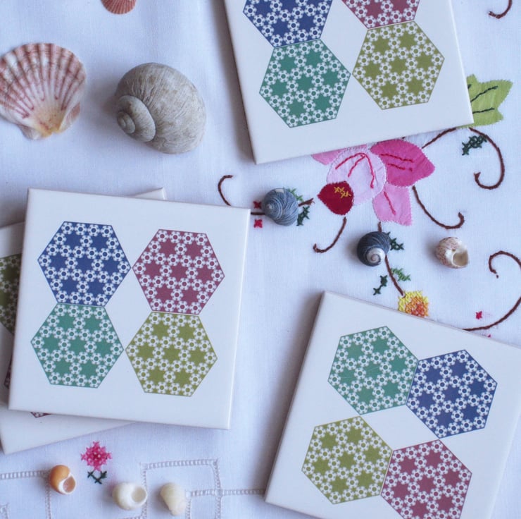4 x Pastel Hexagon Pattern Ceramic Tile Coasters with Cork Backing