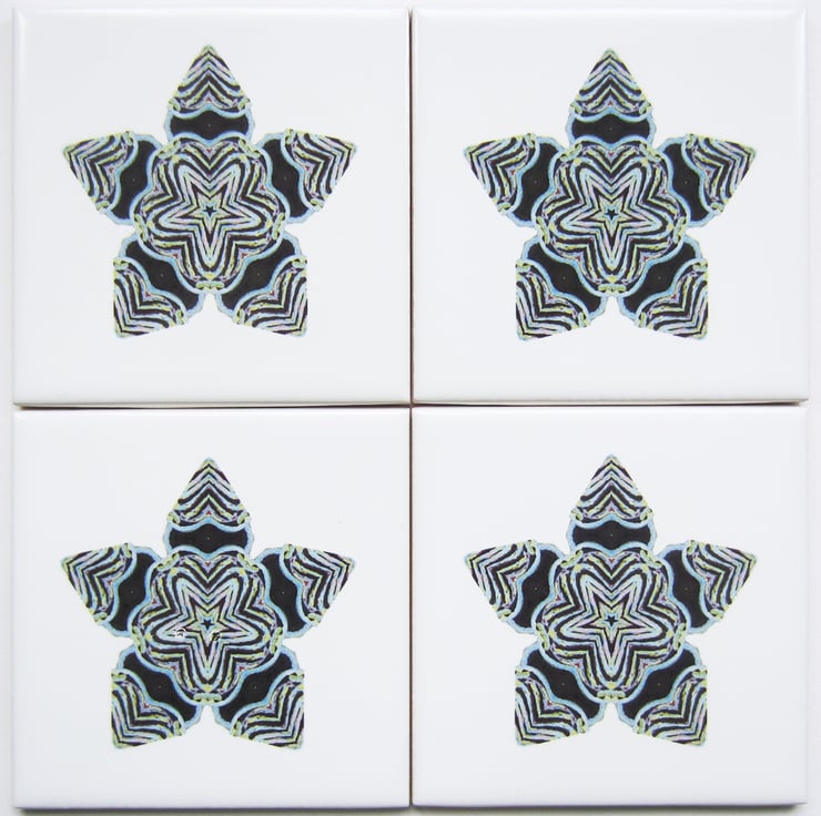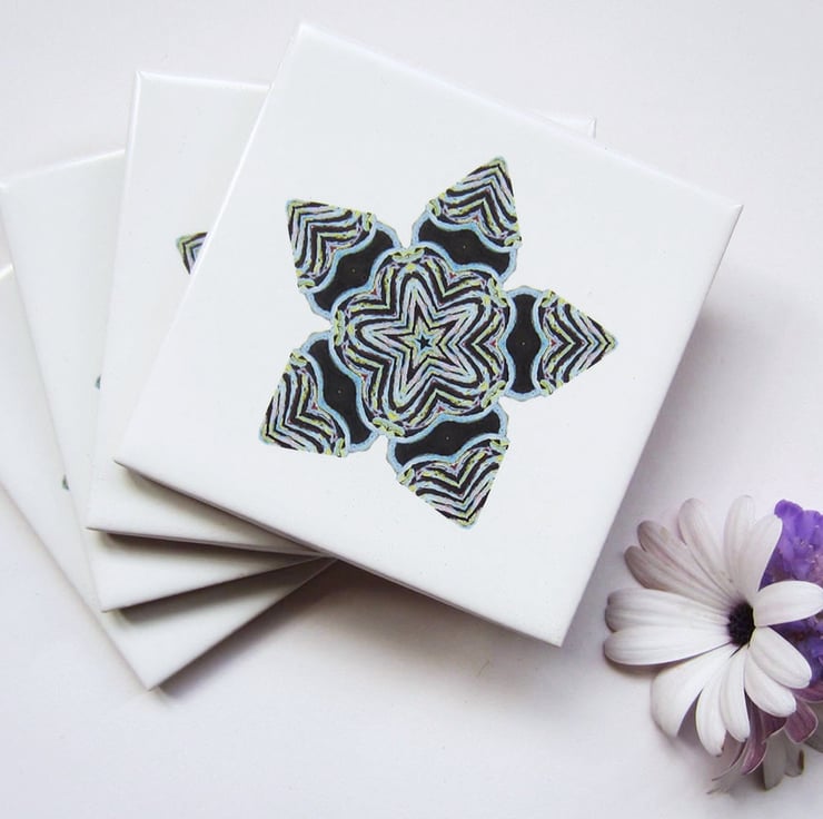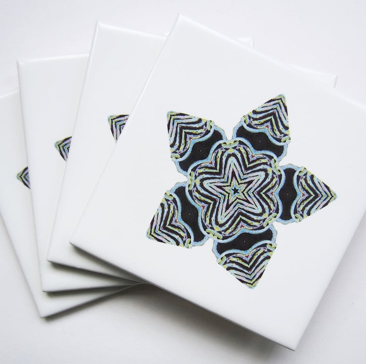 Set of 4 Ragged Star Pattern Ceramic Tile Coasters with Cork Backing