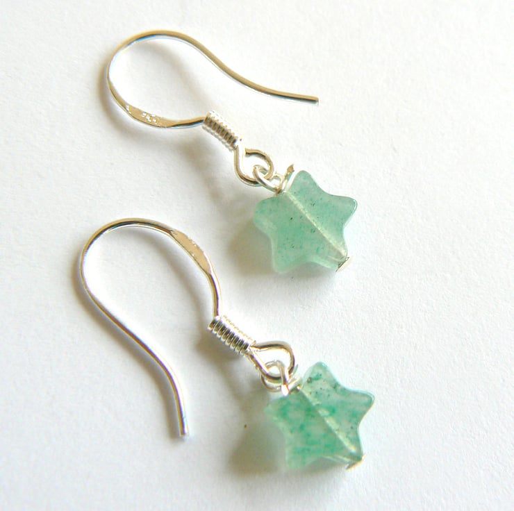Aventurine Mini Star Drop Earrings on sterling silver, 5mm stone. Free gift pouch Very pretty little earrings.