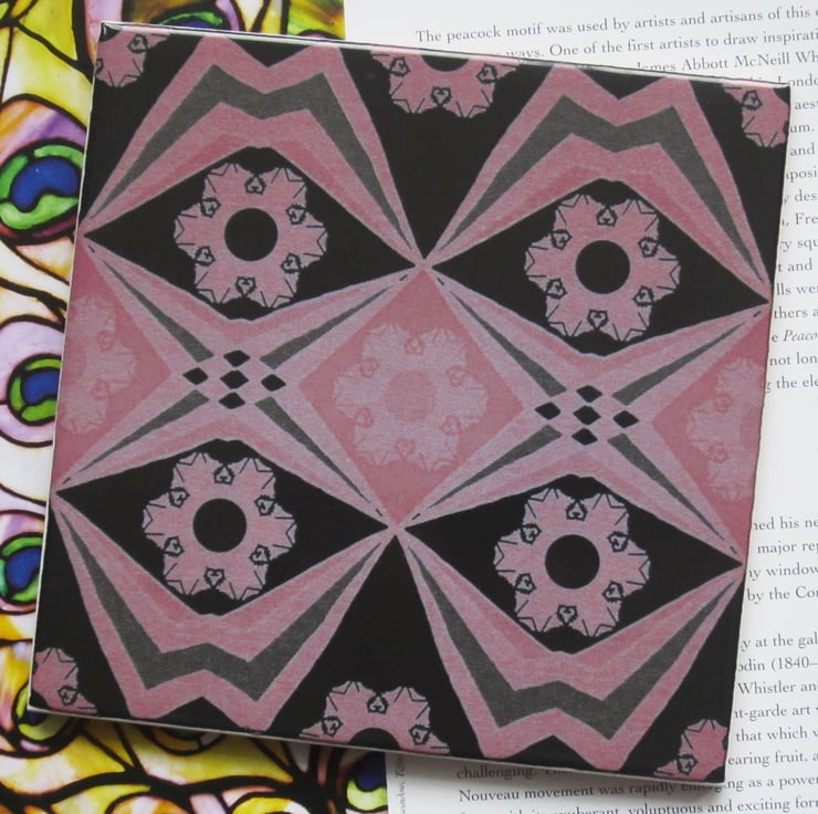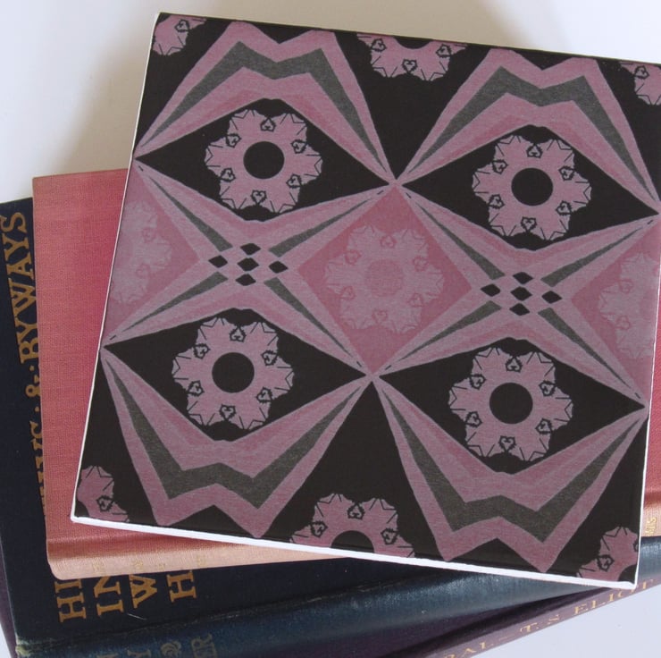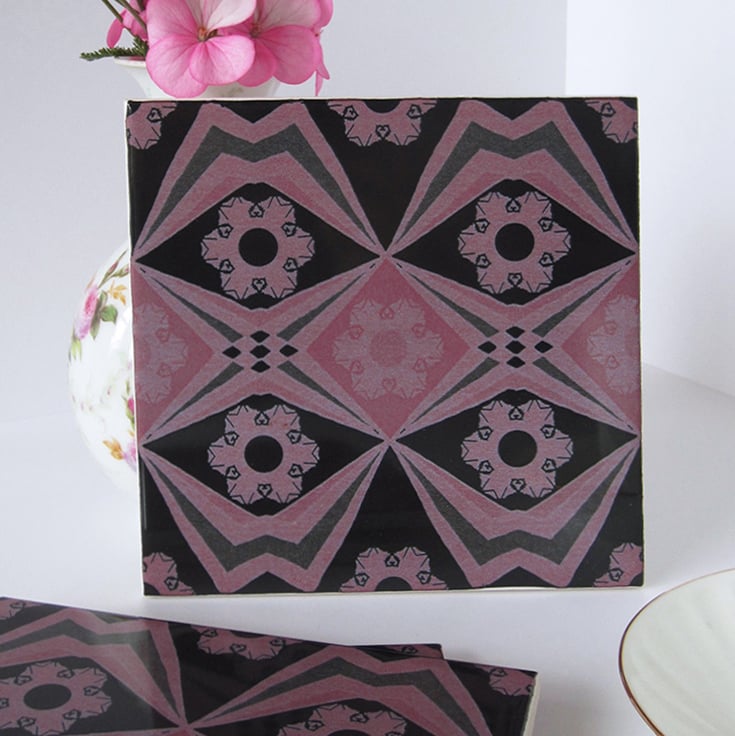 Pink and Black Decoupage Effect Ceramic Tile with Cork Backing - SALE ITEM