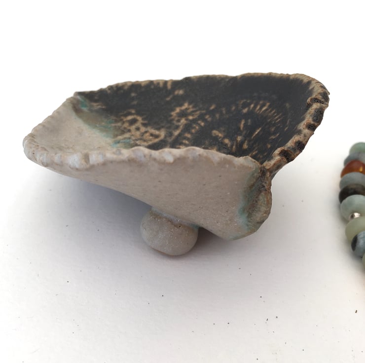 This beautiful little ring/earring dish is designed and made by myself as a one-off, handmade piece of pottery.