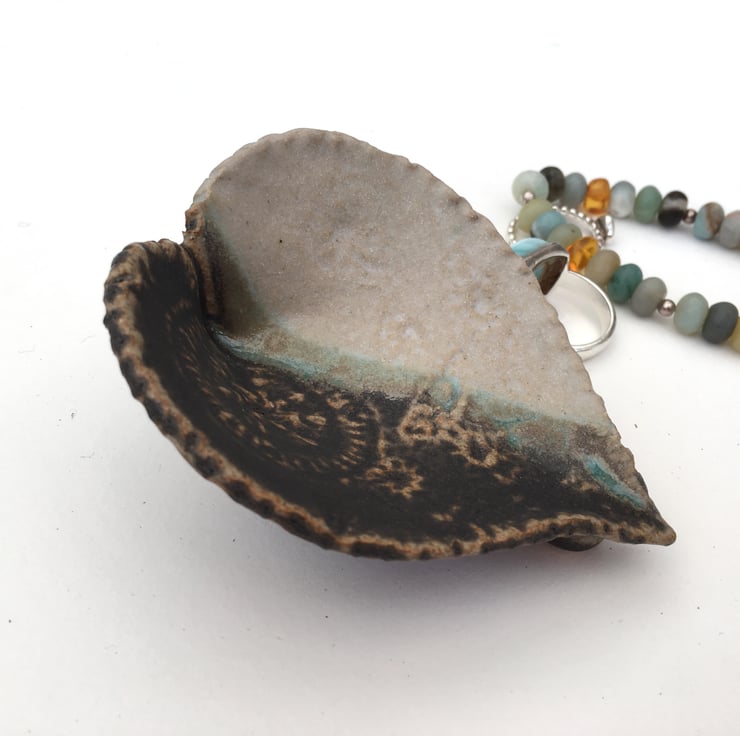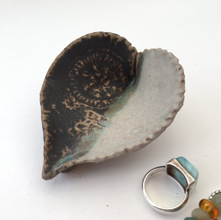This beautiful little ring/earring dish is designed and made by myself as a one-off, handmade piece of pottery.