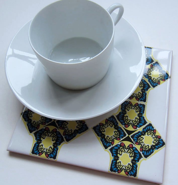Geometric Mosaic Style Pattern Ceramic Tile Trivet with Cork Backing - THIRD OFF ORIGINAL PRICE