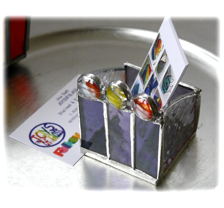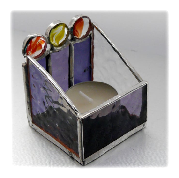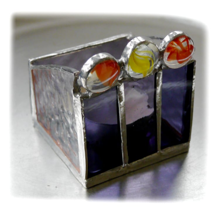 This is a small candle box handmade in stained glass using the Tiffany copper foil technique.