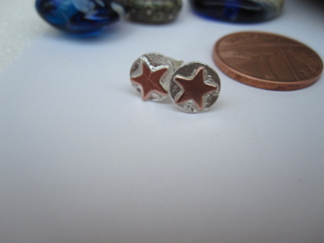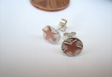 A pair of Superstar earrings for a Star, Copper Wishing Stars on 925 discs.