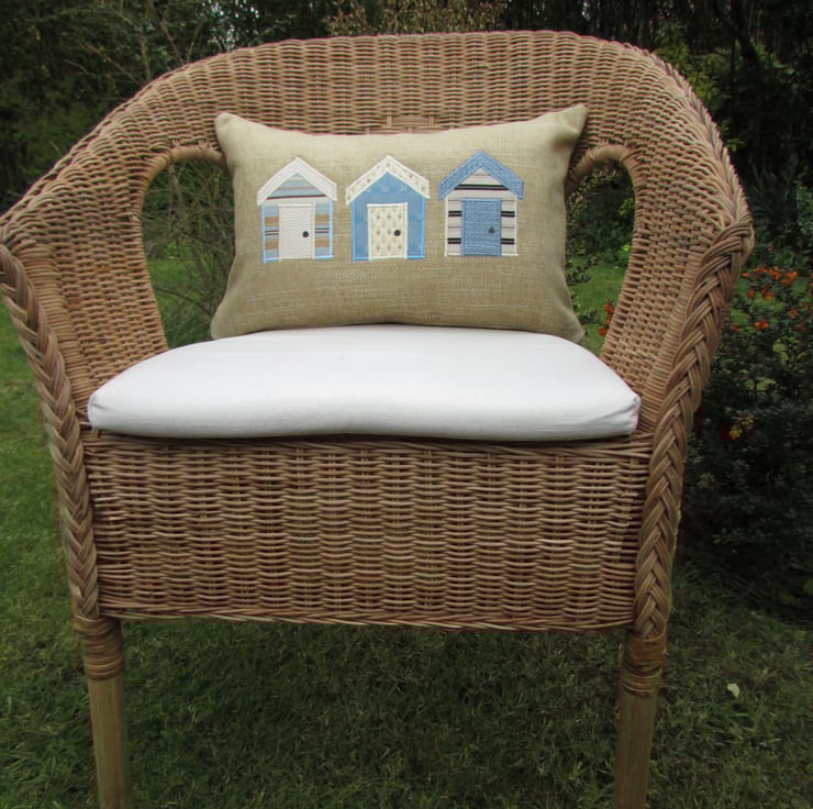 This cushion, with its natural coastline colours, would be perfect for accessorising a beach hut or summer house and would make a lovely gift for anyone who loves beach huts.