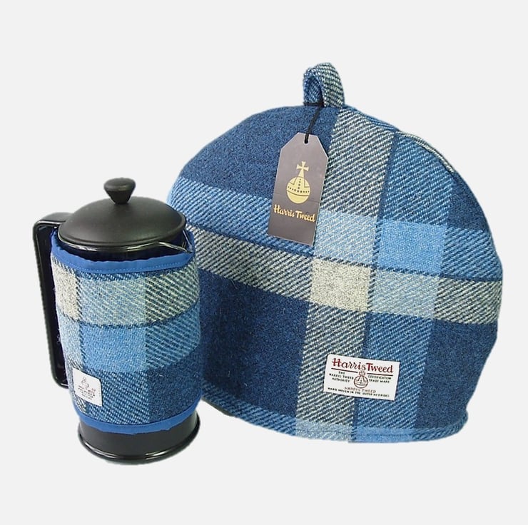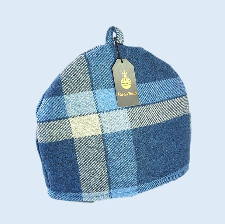 I selected a bold blue and white large check design of the world renowned Harris Tweed handwoven fabric to create this beautiful quality cosy. It is lined in white cotton fabric, and wadded with polyester to keep your tea warm. The Orb label, your guarantee of authentic Harris Tweed fabric is proudly displayed.