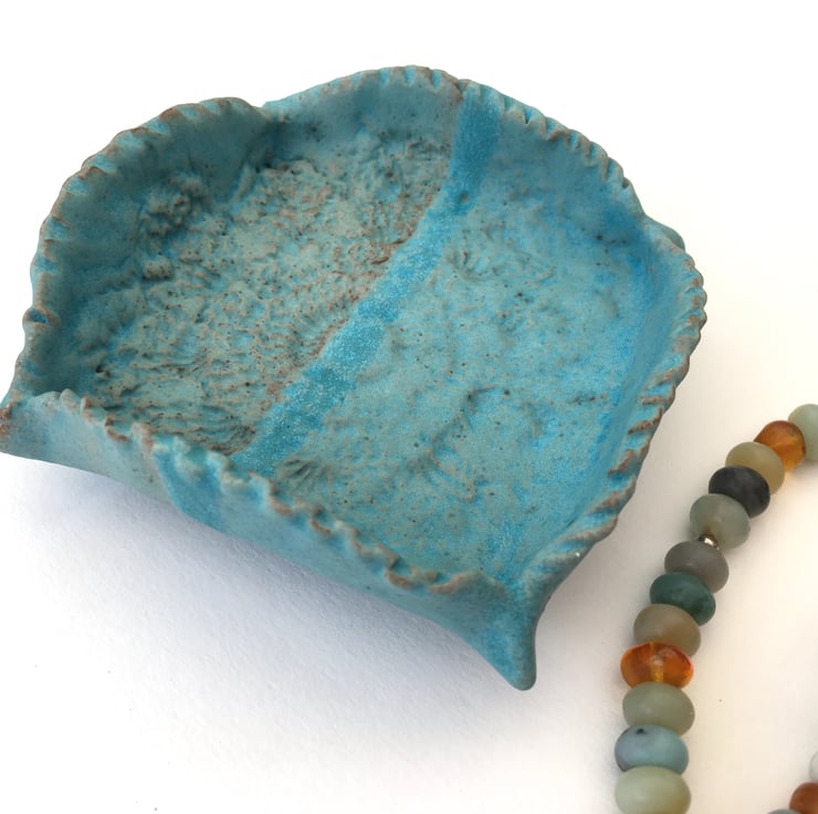 This beautiful little ring/earring dish is designed and made by myself as a one-off, handmade piece of pottery.