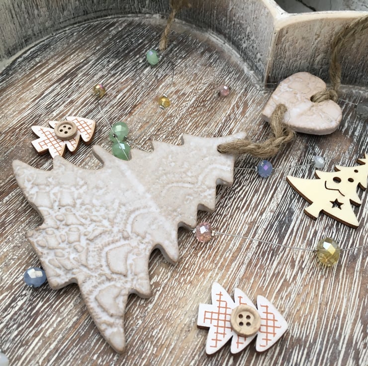 Hand made in Yorkshire, ceramic tree decoration.