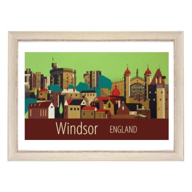 A contemporary travel poster style print of the historic Windsor Castle, from my own original acrylic painting.