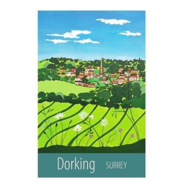 A beautiful A3 print of the historic market town of Dorking from Denbies vineyard, in a ‘shabby chic’ white frame.
