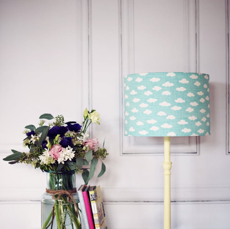 This lampshade is made using a light blue organic cotton fabric with white clouds on it.This lampshade would be a wonderful addition to any boys bedroom or nursery. If you would like a swatch of the fabric please send me a message.