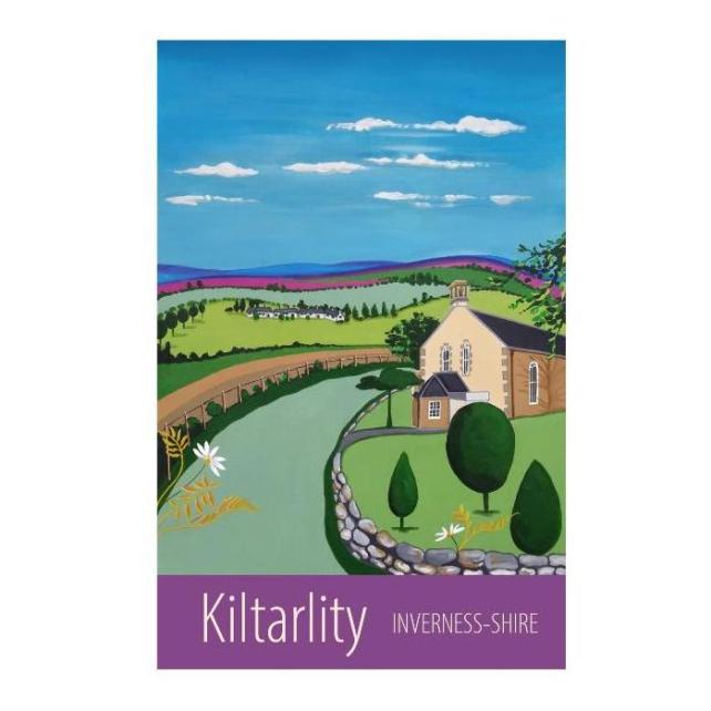 A contemporary travel poster style print of the tiny Highland village of Kiltarlity, near Inverness in Scotland, from my own original acrylic painting.