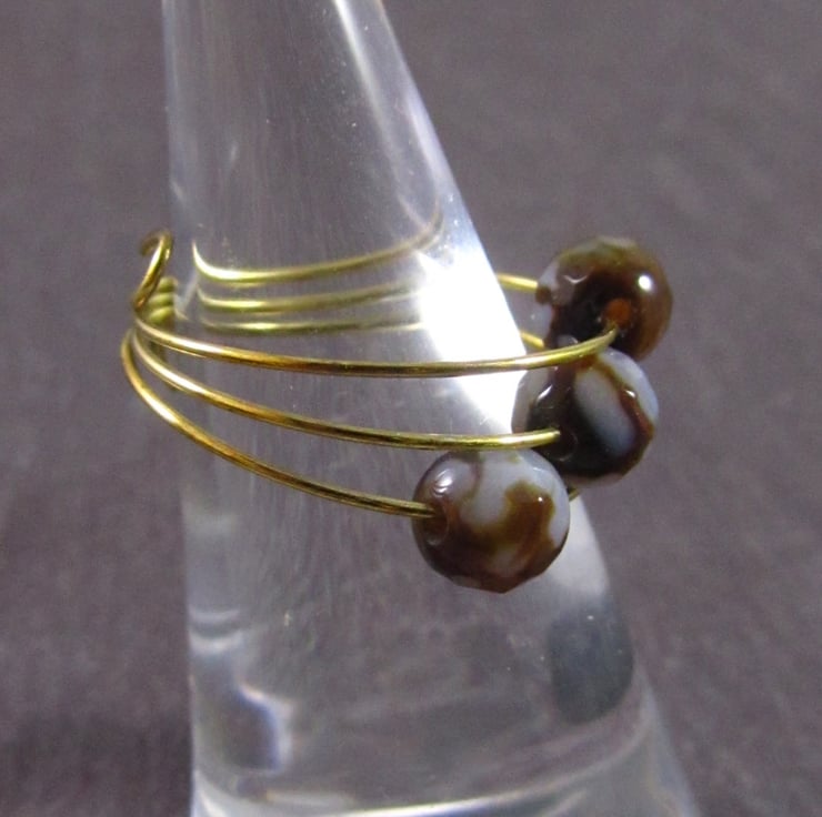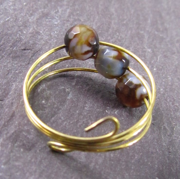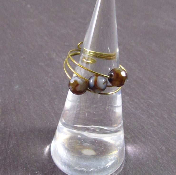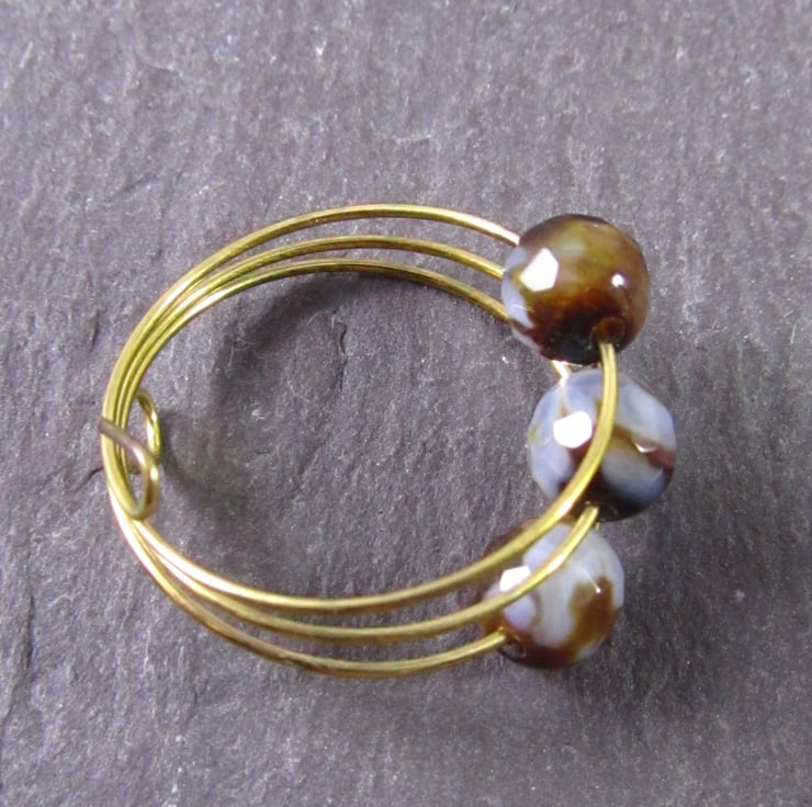 This is an striking brown agate gold memory wire ring. It is created with gold colour memory wire, and real faceted brown agate gemstones. This ring is very comfortable to wear, perfect for every day wear.