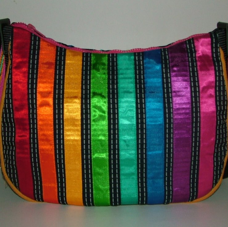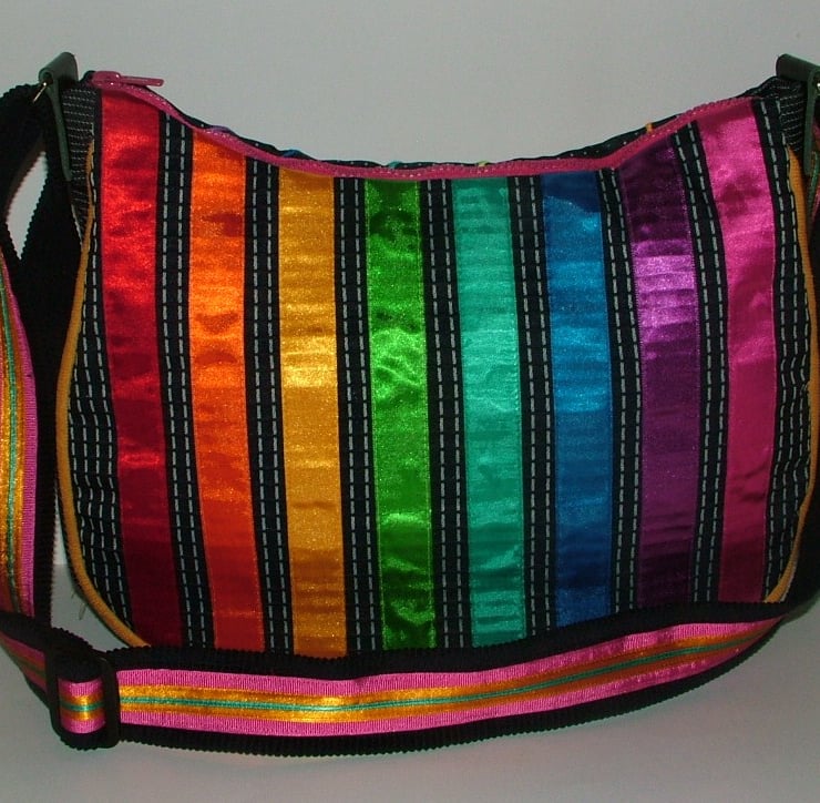 This unique handbag utilizes the fantastic qualities found in satin ribbon and has been hand crafted to produce a high quality and eye catching individual handbag.